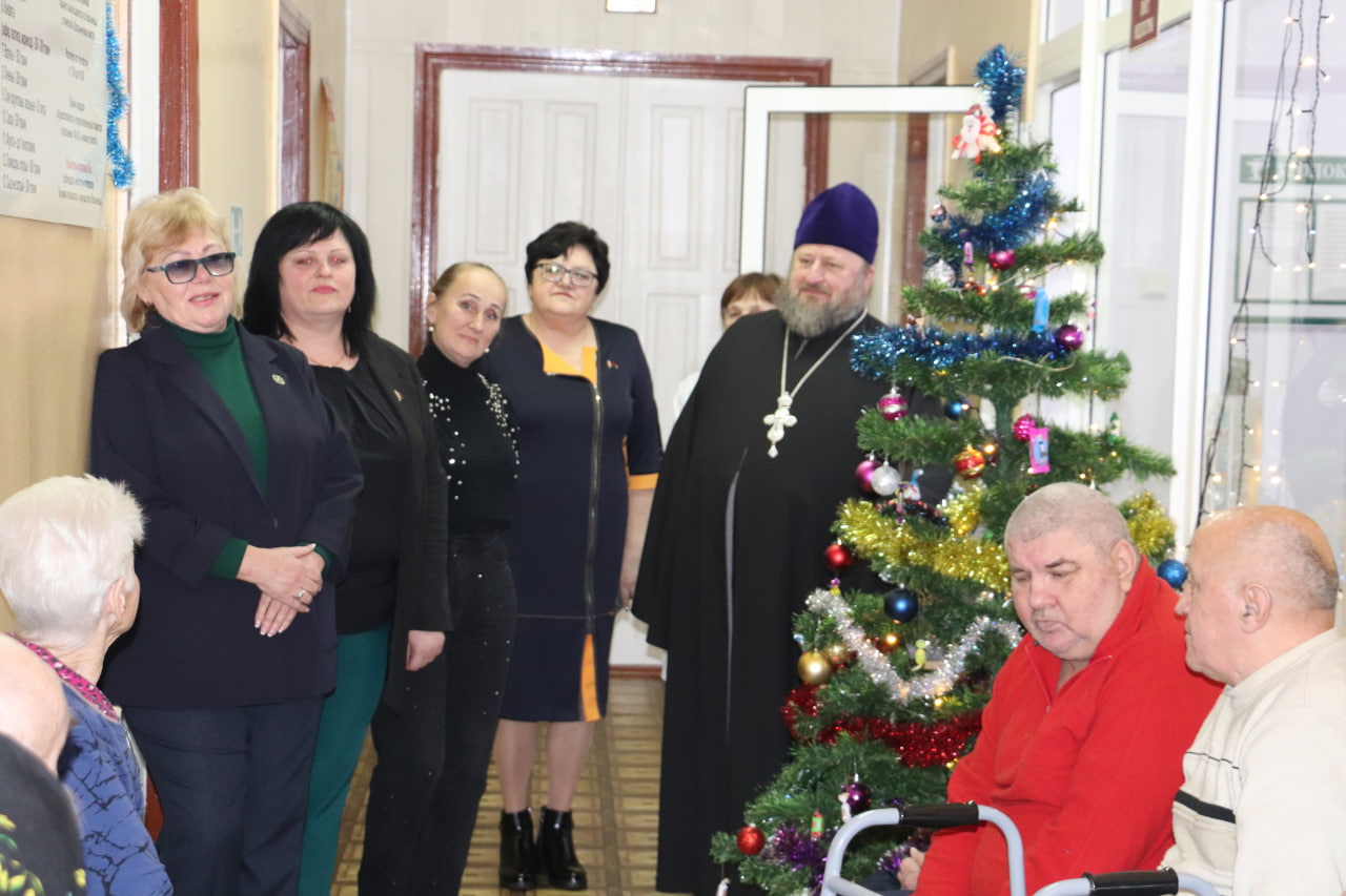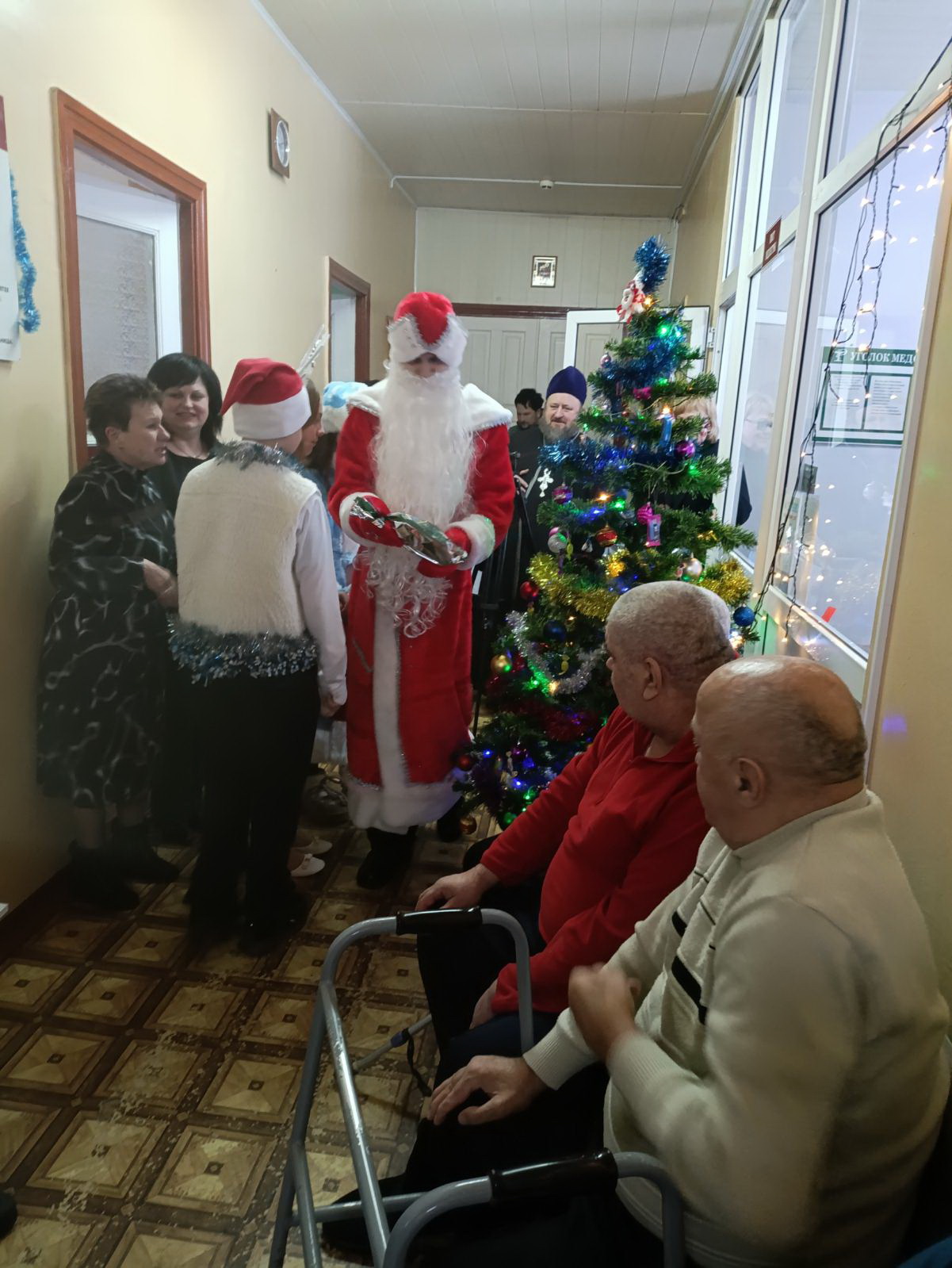 Целая делегация гостей вместе с Дедом Морозом и Снегурочкой навестила с поздравлениями и подарками пациентов Великоритской больницы сестринского ухода.