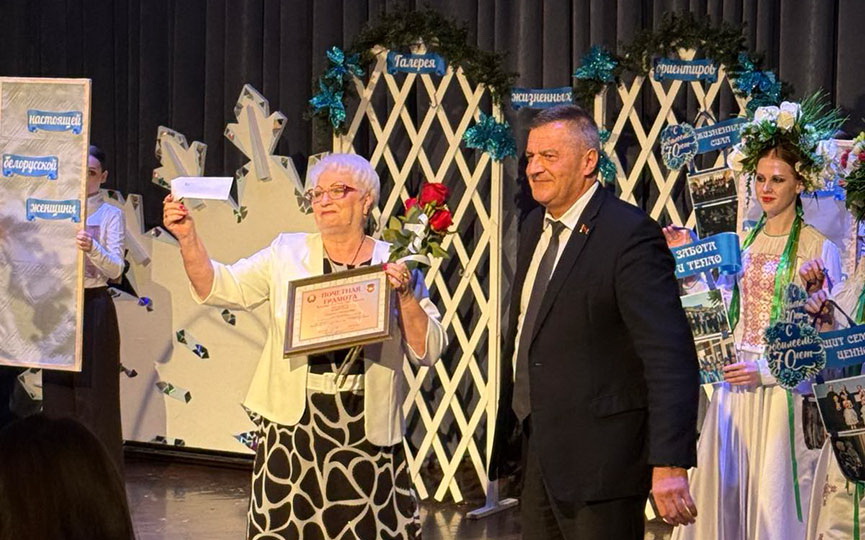 Он вручил Леониде Степановне Почетную грамоту Брестского областного Совета депутатов в знак признания ее заслуг и в связи с 70-летием со дня рождения.