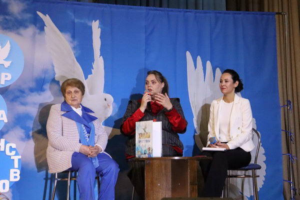 После торжественного открытия юных миротворцев ждала творческая встреча с актрисой театра и кино, руководителем театральной студии, автором многочисленных проектов Яниной Малинчик. Разговор о дружбе, творчестве, добре, мечтах и стремлениях никого не оставил равнодушными. В завершение вечера Я.Малинчик с радостью раздала автографы всем желающим, а в ответ миротворцы РЦДТ преподнесли гостье символичный подарок – сувенир «Папараць-кветка», как создателю фильма «Цветочница».