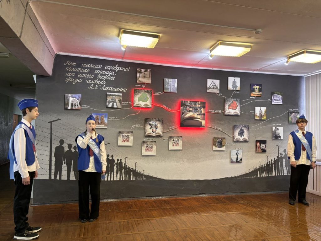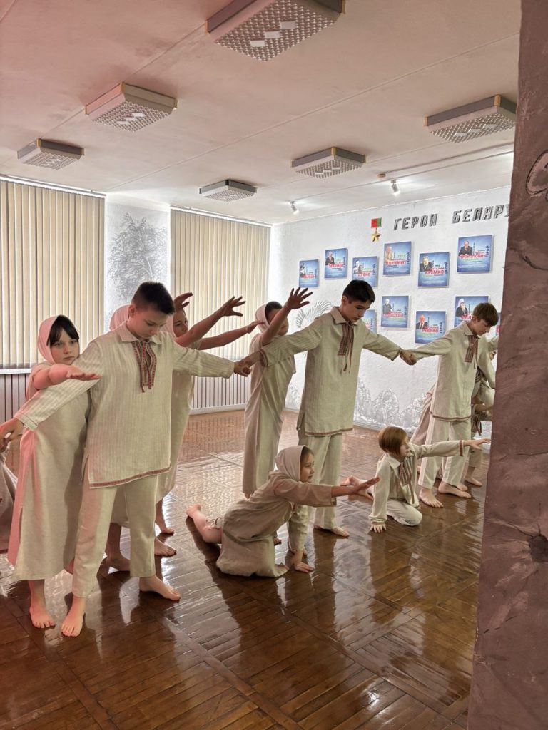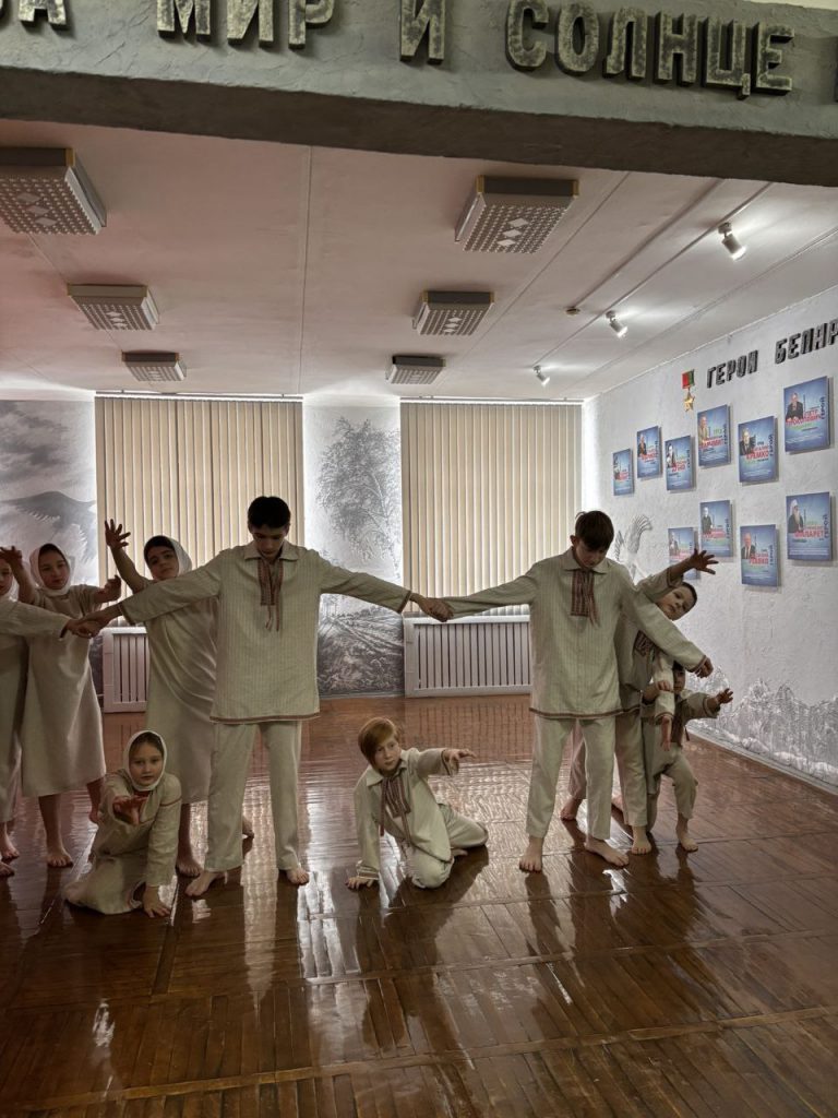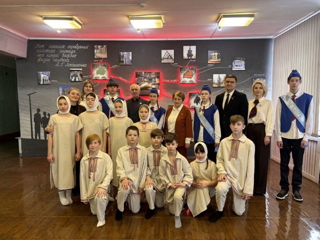 Перед участниками встречи выступил образцовый ансамбль народного танца «Мацейка». Коллектив является гордостью и образцом профессионализма не только школы. Созданный в 1997 году, в 2012 году был удостоен звания «Образцовый». Участники ансамбля показали хореографическую постановку «Хатынь», которая до глубины души тронула всех присутствующих. Ребята в постановке передали зрителям ту боль, которую перенес многострадальный белорусский народ, вытерпел все ужасы войны и нацизма и сегодня достоин мирной жизни.