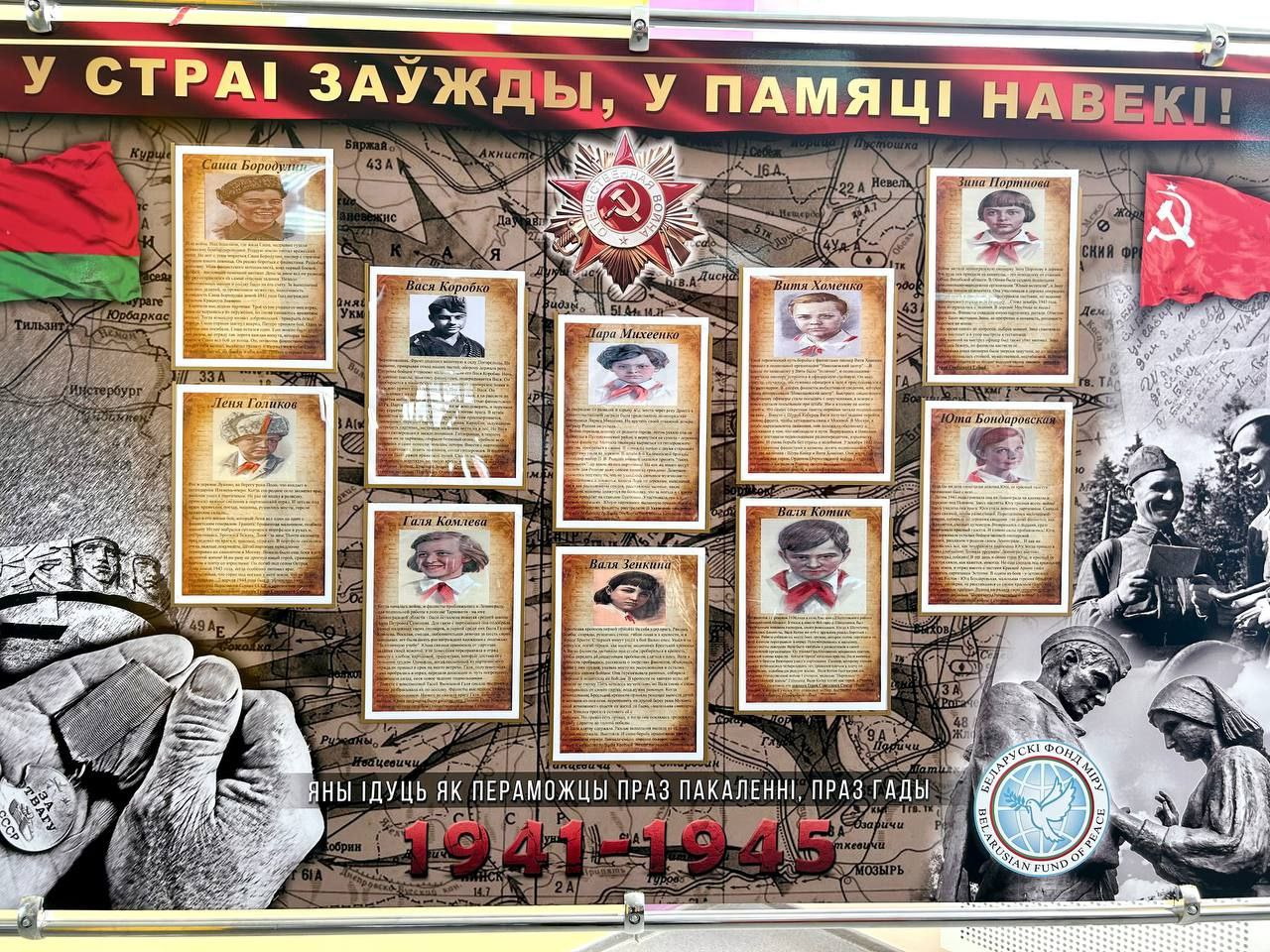 Также была организована тематическая выставка, а для наглядности и погружения в историю использовался информационный стенд Белорусского фонда мира «В строю всегда, в памяти навечно!».