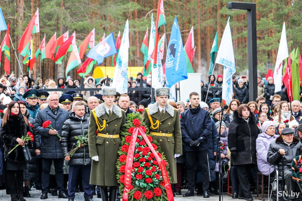 Возложение цветов и венков к мемориалу предварила скорбная минута молчания.