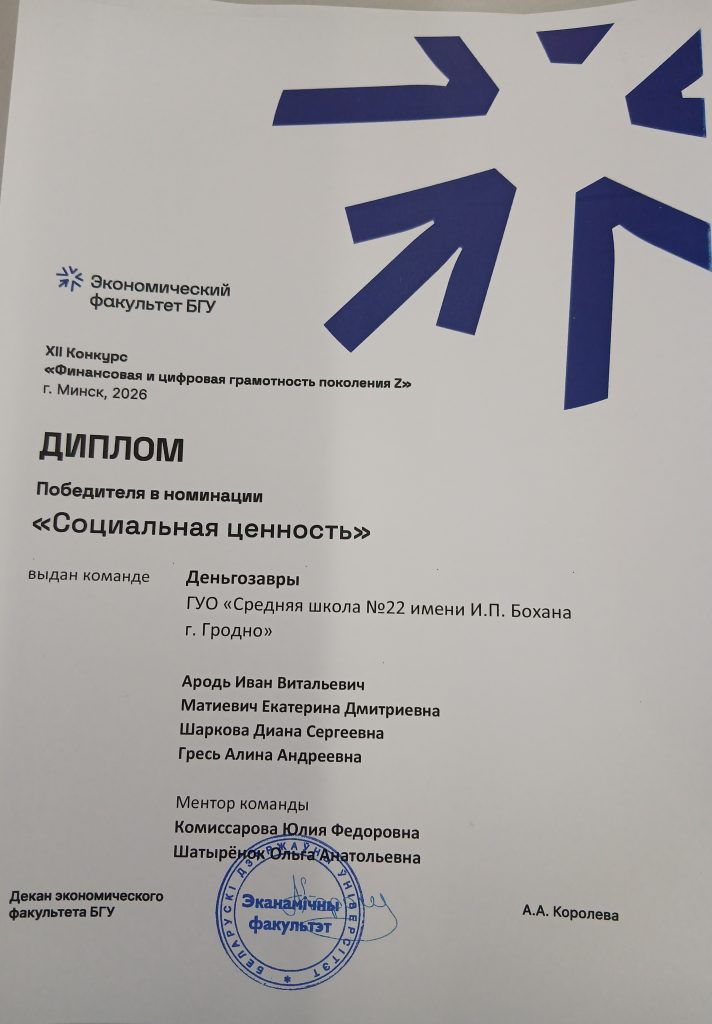 Миротворцы ГУО «Средняя школа #22 имени И.П.Бохана г.Гродно» создали и представили видеоролик по противодействию финансовому мошенничеству «Береги мир! Начни с семьи!».