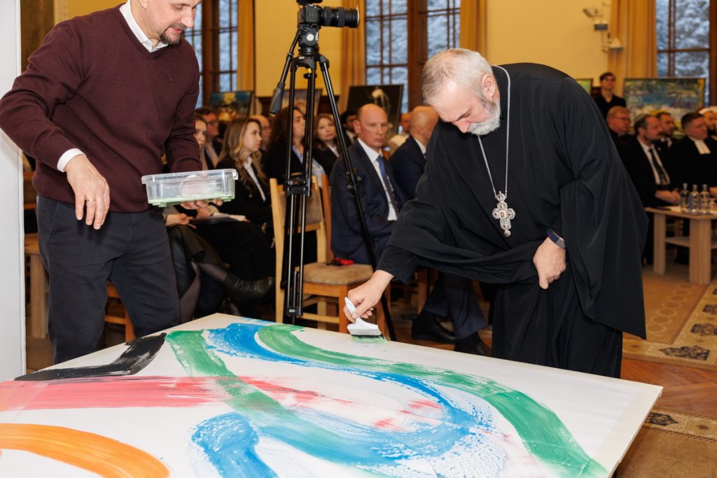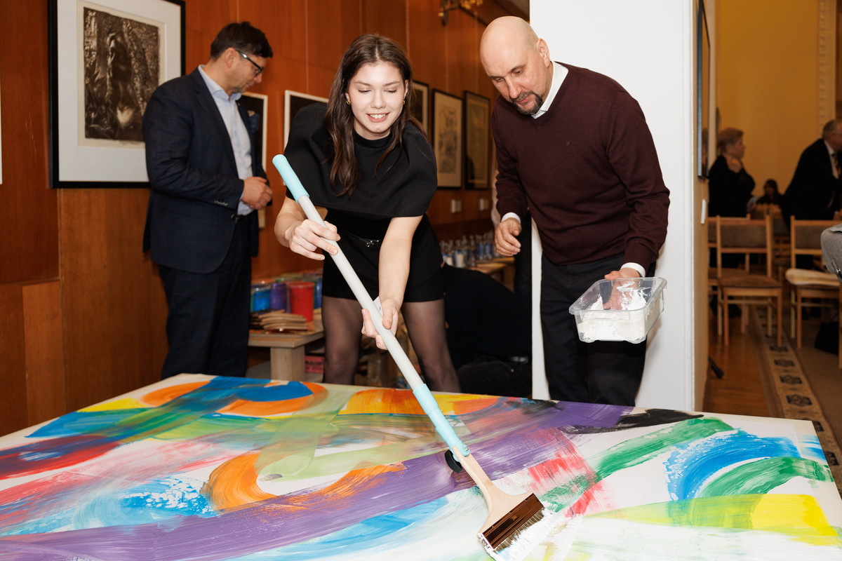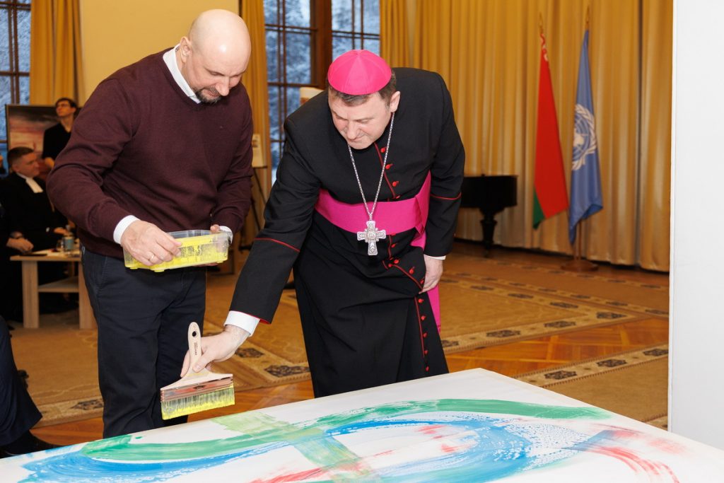 Символической и важной частью встречи стала интерактивная арт-акция «Один холст — множество голосов», организованная Белорусским фондом мира в рамках Международного социально-благотворительного проекта «Сильные духом».