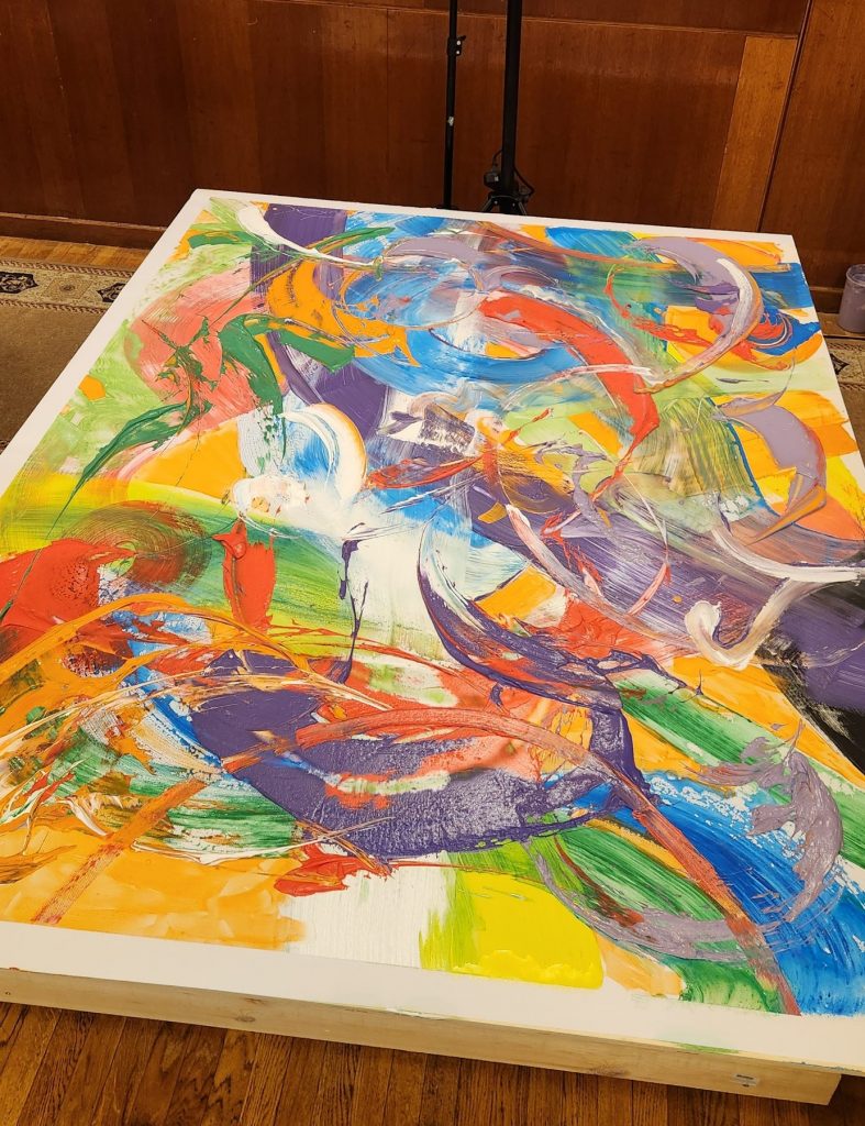 В итоге получилась красочная картина 1.5 х 2 метра в стиле абстрактного символизма.
