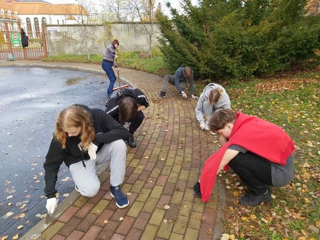 27 октября они, дружные и очень организованные, с волнением и большим желанием быть полезными этому светлому и заботливому дому, под руководством своих кураторов и педагогов провели весь свой трудовой день в Церковном саду Минского Дома милосердия прихода в честь Всех Святых.