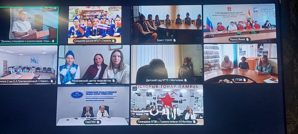 3 апреля во Дворце пионеров и школьников города Курска около 100 человек собрались на Международную встречу «Мир. Дружба. Единство», цель которой – обмен опытом миротворческой работы в рамках подписанных соглашений о сотрудничестве между образовательными учреждениями Курска и Беларуси. Дистанционно к ней подключились представители Касторенского района Курской области и партнёры из шести регионов Республики Беларусь.