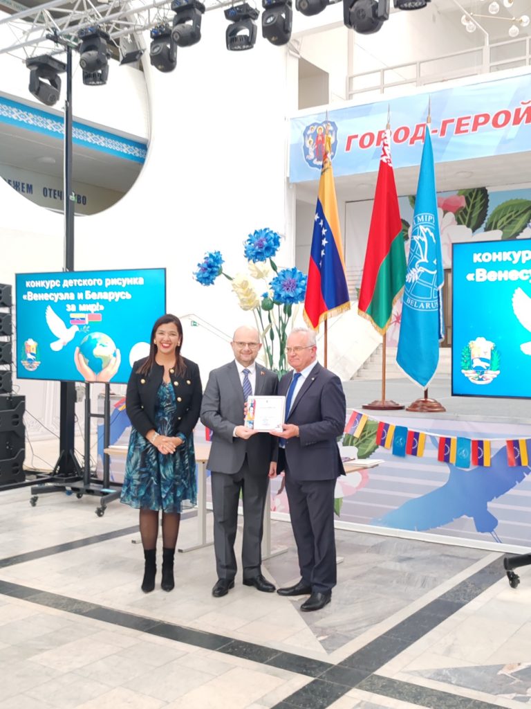За активное социальное партнёрство Благодарность общественного объединения Фонда мира вручена Посольству Венесуэлы, а Диплом Посольства вручен Минскому городскому отделению.