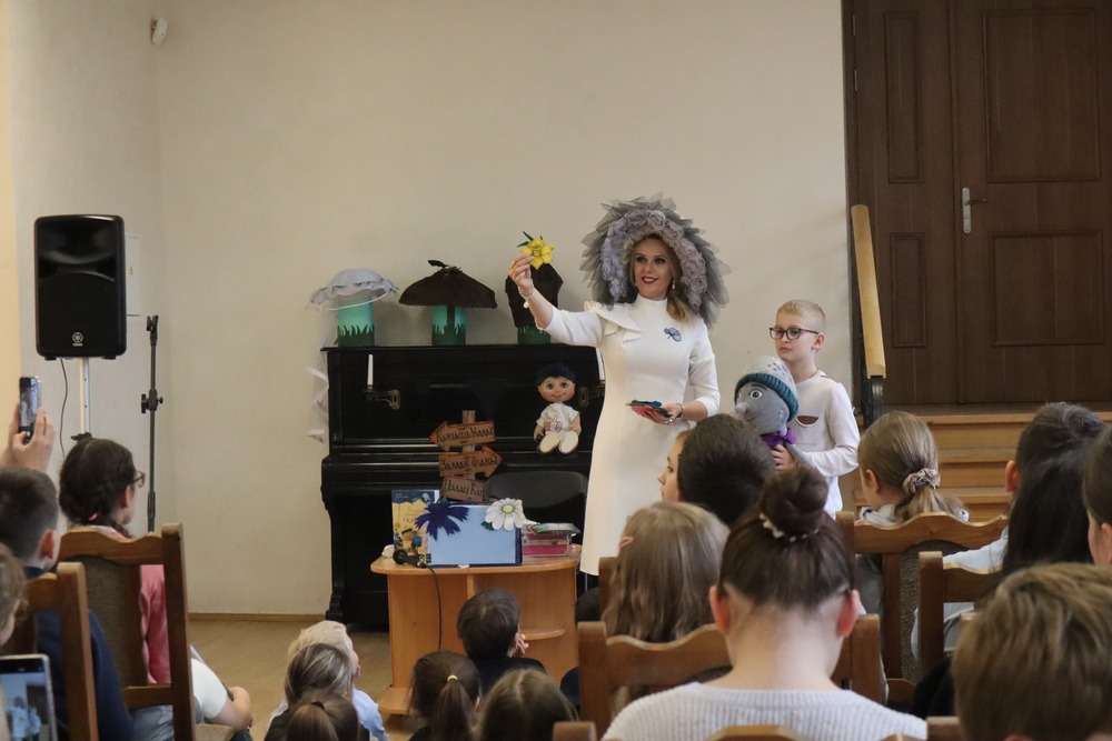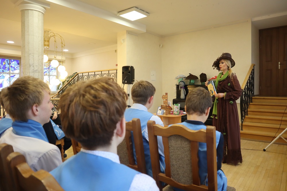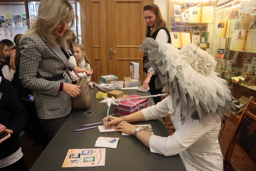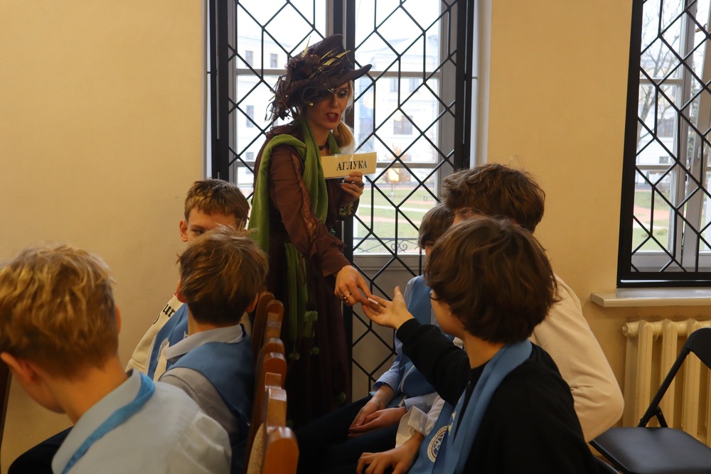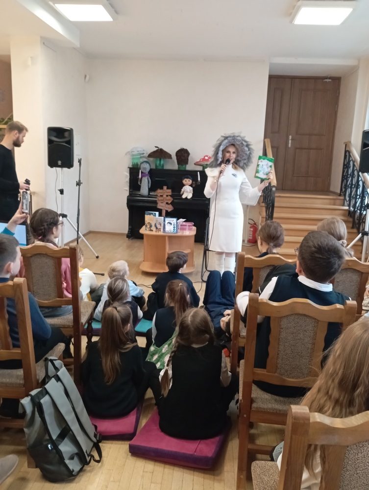 А для вучняў 7-8 класаў пiсьменнiцай была праведзена iнтэрактыўная дзея-квэст «Падарожжа гасцей па старонках кнiг Феi».