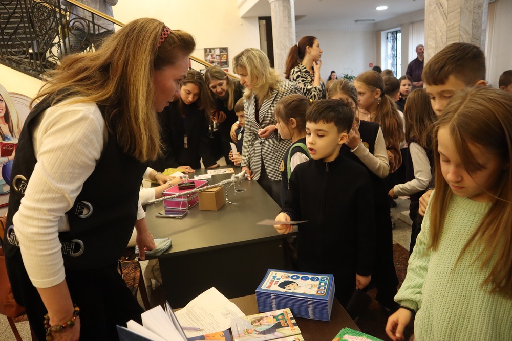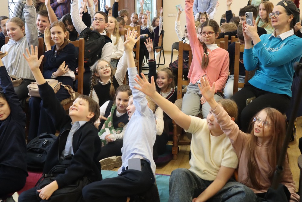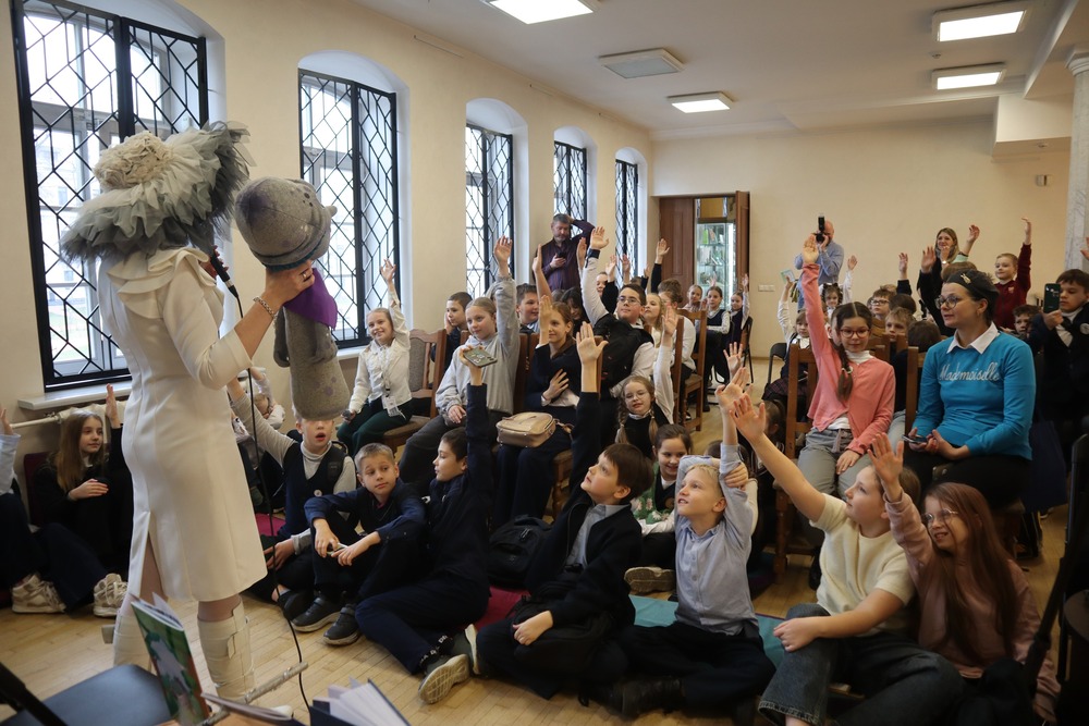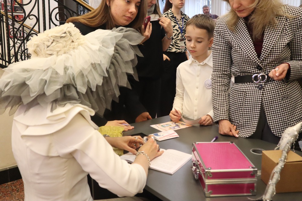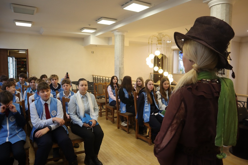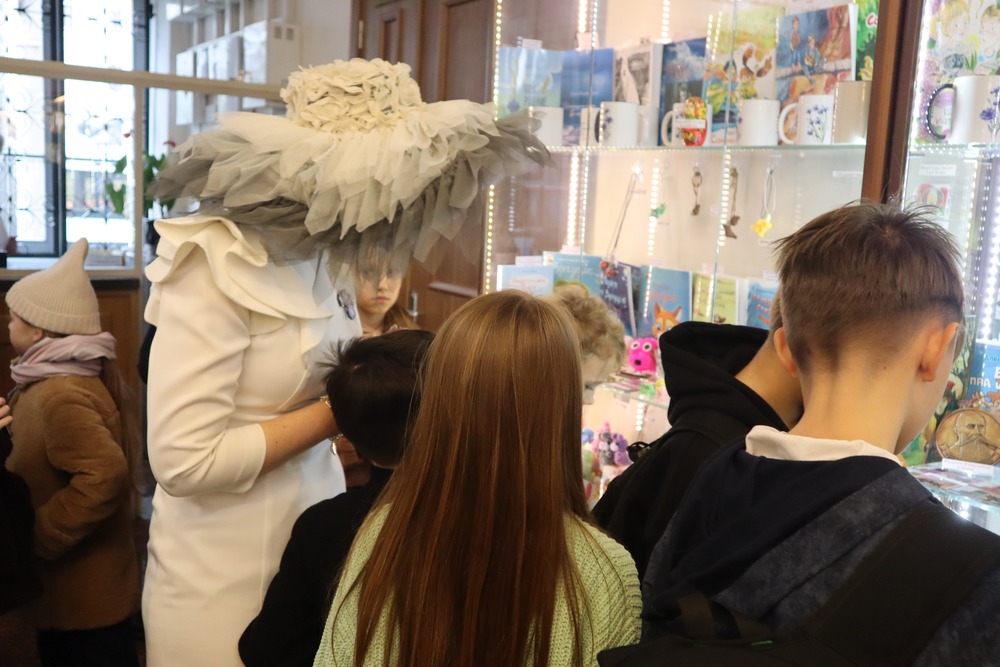 А для вучняў 7-8 класаў пiсьменнiцай была праведзена iнтэрактыўная дзея-квэст «Падарожжа гасцей па старонках кнiг Феi».