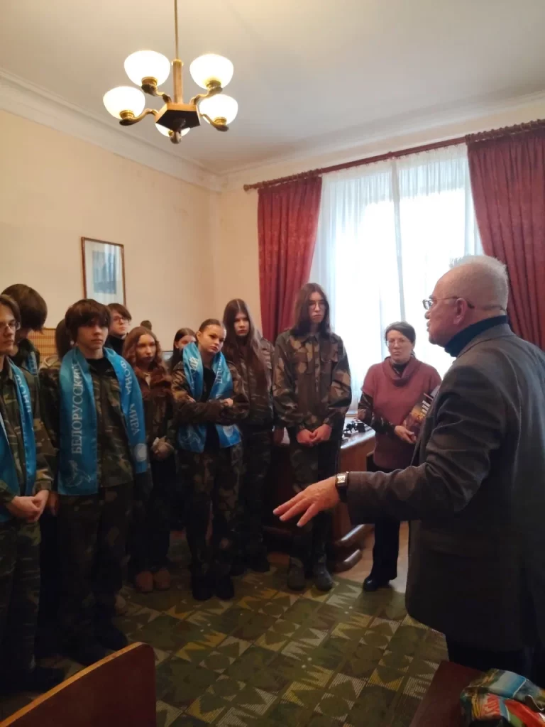 У музеi П.Броўкi праходзiла другая дзея. На сустрэчу з класiкам беларускай лiтаратуры – Пятрусём Броўкам – Партызанская раённая арганiзацыя Беларускага фонда мiру накiравала вучняў ваенна-патрыятычнага 10 «А» класа сярэдняй школы № 72 г. Мiнска. Мерапрыемства прысвячалася дзейнасцi пiсьменнiка ў часы Вялiкай Айчынай вайны.