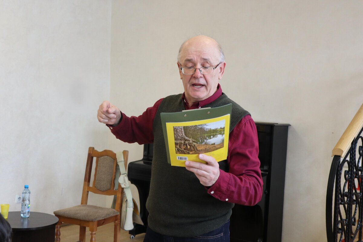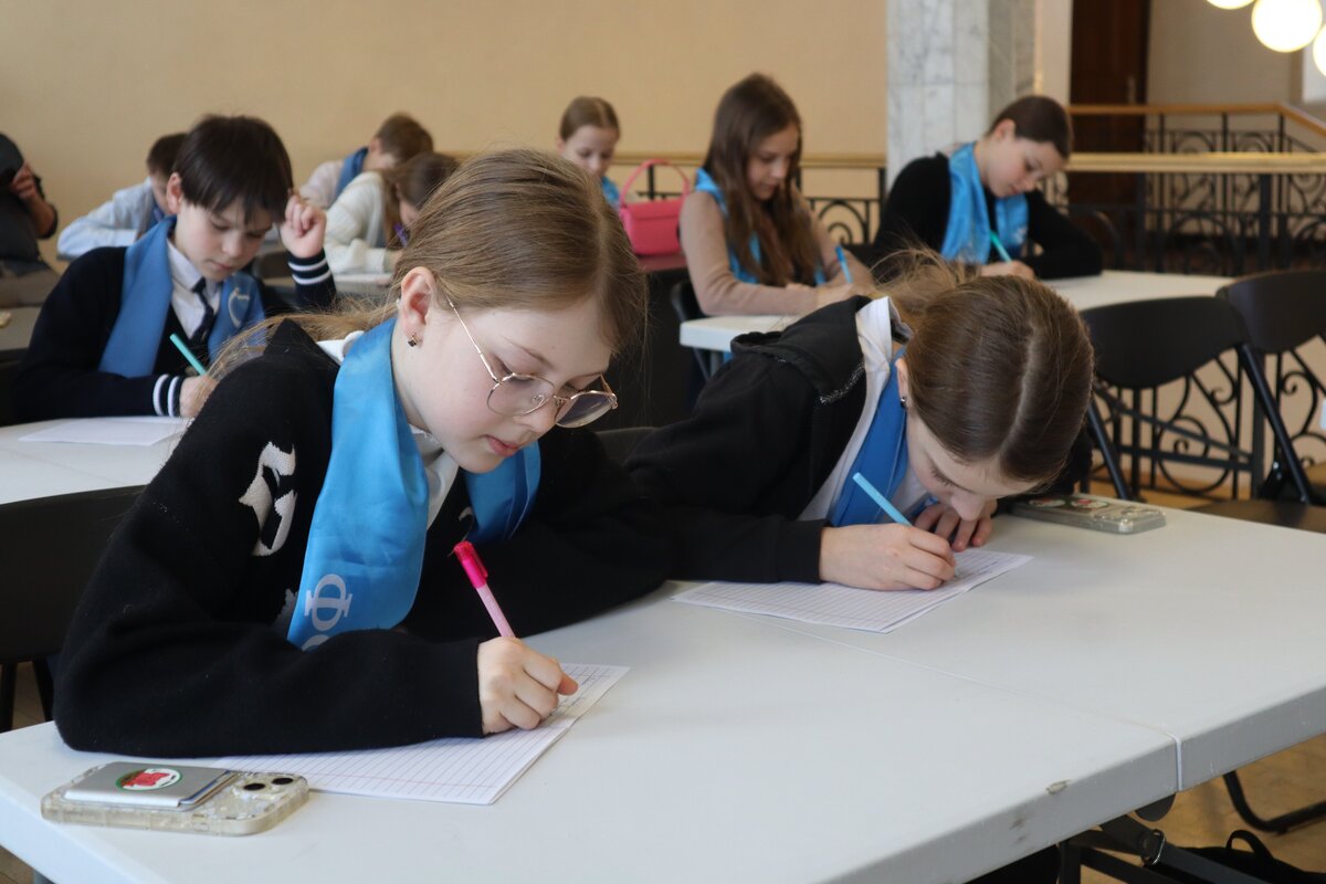Удзельнiкам сустрэчы было прапанавана напiсаць дыктоўку па аднаму з твораў мастака пяра – «Крапiўнiк». Уладзiмiр Iванавiч паспрабаваў сябе ў якасцi настаўнiка i сам дыктаваў тэкст. Атрымалася крышку i складана для вучняў, але i цiкава ад незвычайнай перадачы тэкста. Па вынiках напiсання лепшыя вучнi будуць адзначаны i Фондам міру, i музеем. А ўдзел у мерапрыемтсве ўзялi вучнi 5 «А» класа гiмназii № 3 г.Мiнска – Школы мiру.