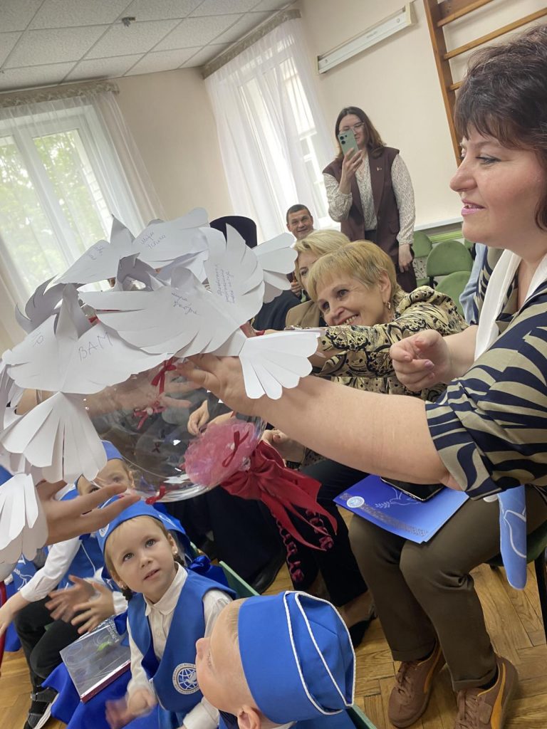 Особенным моментом праздника стало прикрепление гостями голубей со своими пожеланиями к макету Земного шара, который будет хранится в саду и собирать в будущем самые добрые послания.