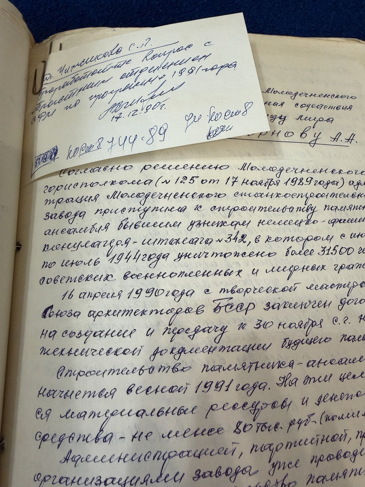 Мы разместили статью в газете, организовывали субботники , деньги от которых перечислялись на строительство Мемориала.