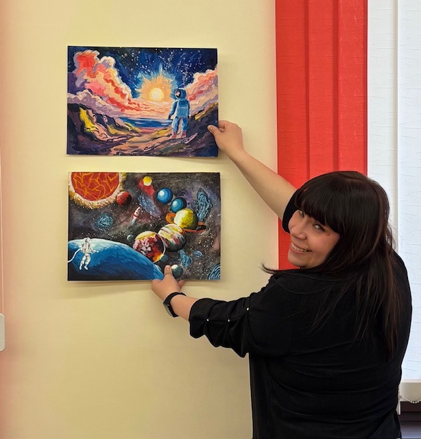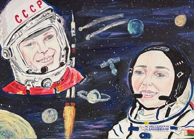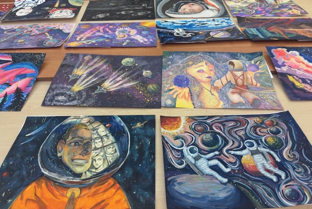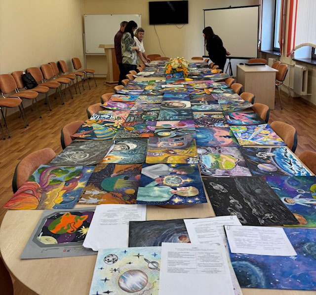 В ней были представлены работы участников областного этапа международного творческого конкурса «Космос объединяет».
