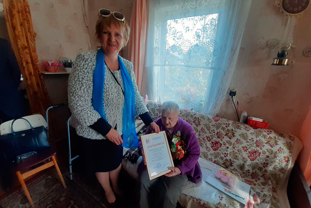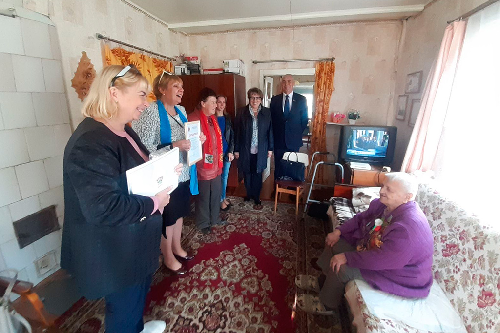 В рамках Недели Мира 21 сентября активисты Кличевской районной организации Белорусского фонда мира поздравили ветерана Великой Отечественной войны Марию Демидовну Шалай с Международным днем мира и 100-летием ЛКСМБ, вручили ей Благодарность и памятные подарки.